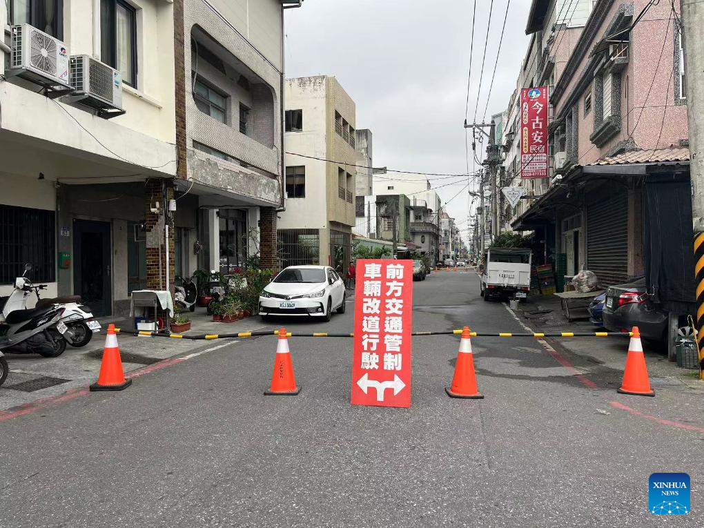 This photo taken on April 5, 2024 shows a closed road in downtown Hualien, southeast China's Taiwan. A 7.3-magnitude earthquake jolted the sea area near Hualien County in Taiwan at 7:58 a.m. Wednesday (Beijing Time), followed by many aftershocks, according to the China Earthquake Networks Center. (Xinhua/Zhao Bo)