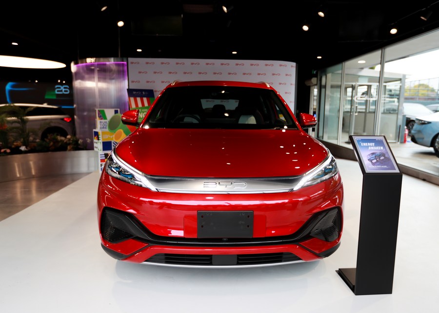 SYDNEY, April 5 (Xinhua) -- Chinese BYD electric vehicles (EVs) were shining in Australia's Sydney, with the pre-opening ceremony of BYD Haberfield Sales and Service Center held here on Thursday.