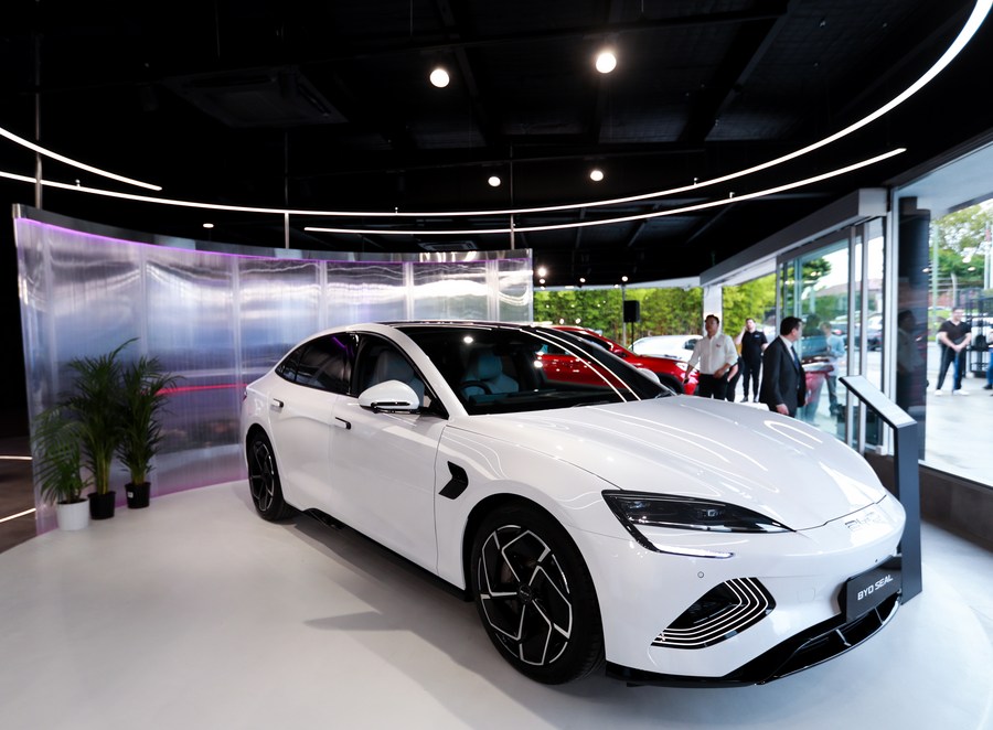 This photo taken on April 4, 2024 shows an exterior view of BYD Haberfield Sales and Service Center in Sydney, Australia. (Xinhua/Ma Ping) ■