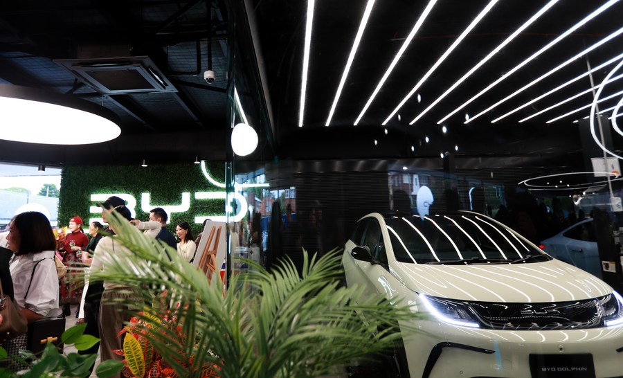 This photo taken on April 4, 2024 shows an interior view of BYD Haberfield Sales and Service Center in Sydney, Australia. (Xinhua/Ma Ping)