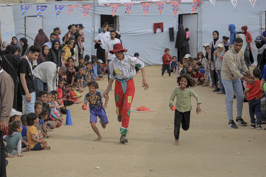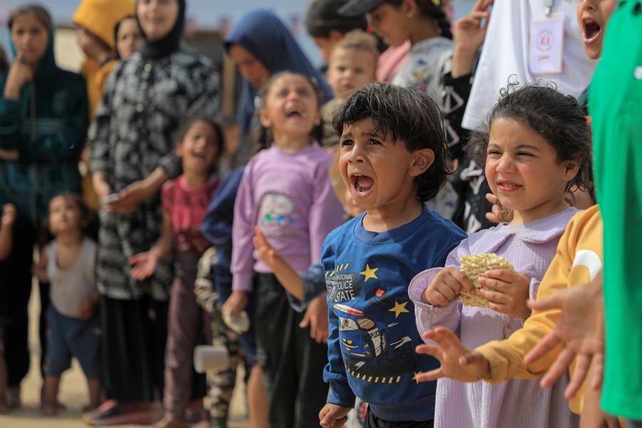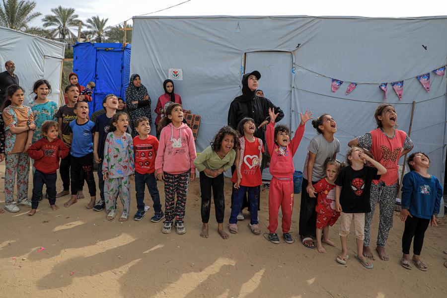 A child is pictured at a camp in the southern Gaza Strip city of Khan Younis, April 5, 2024. Palestinian Minister of Social Development Samah Abu Aoun said the continuous Israeli bombing has resulted in the deaths of more than 14,861 children, and about 17,000 children in Gaza have become orphans. (Photo by Rizek Abdeljawad/Xinhua)Children are pictured at a camp in the southern Gaza Strip city of Khan Younis, April 5, 2024. Palestinian Minister of Social Development Samah Abu Aoun said the continuous Israeli bombing has resulted in the deaths of more than 14,861 children, and about 17,000 children in Gaza have become orphans. (Photo by Rizek Abdeljawad/Xinhua)A child is pictured at a camp in the southern Gaza Strip city of Khan Younis, April 5, 2024. Palestinian Minister of Social Development Samah Abu Aoun said the continuous Israeli bombing has resulted in the deaths of more than 14,861 children, and about 17,000 children in Gaza have become orphans. (Photo by Rizek Abdeljawad/Xinhua)Children play at a camp in the southern Gaza Strip city of Khan Younis, April 5, 2024. Palestinian Minister of Social Development Samah Abu Aoun said the continuous Israeli bombing has resulted in the deaths of more than 14,861 children, and about 17,000 children in Gaza have become orphans. (Photo by Rizek Abdeljawad/Xinhua)Children play at a camp in the southern Gaza Strip city of Khan Younis, April 5, 2024. Palestinian Minister of Social Development Samah Abu Aoun said the continuous Israeli bombing has resulted in the deaths of more than 14,861 children, and about 17,000 children in Gaza have become orphans. (Photo by Rizek Abdeljawad/Xinhua)■