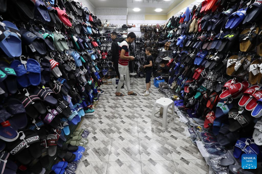 People buy goods ahead of Eid al-Fitr at a shop in Algiers, Algeria, on April 6, 2024. (Xinhua)