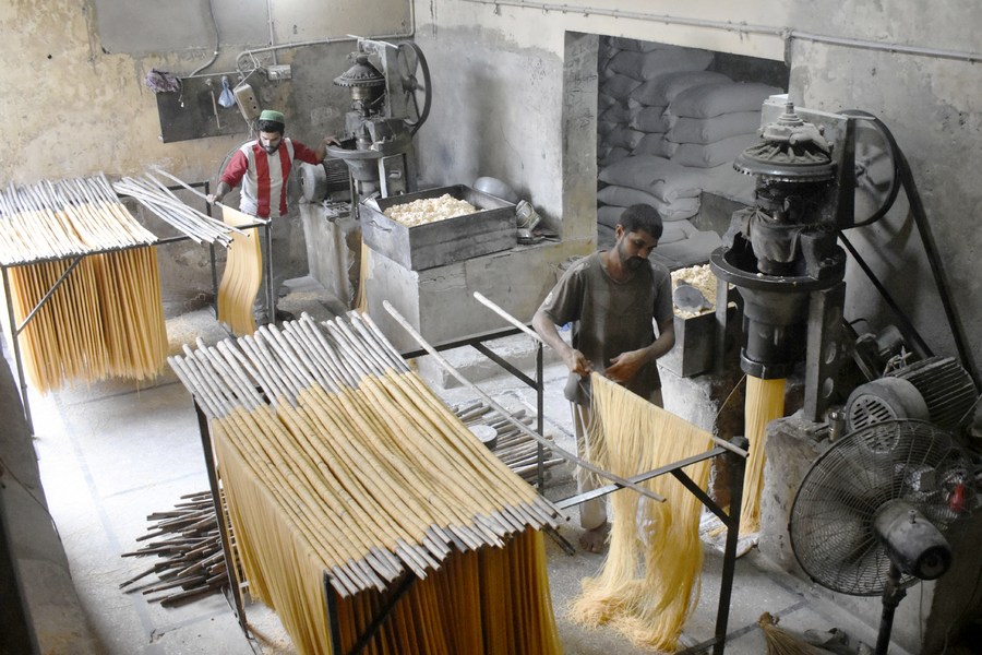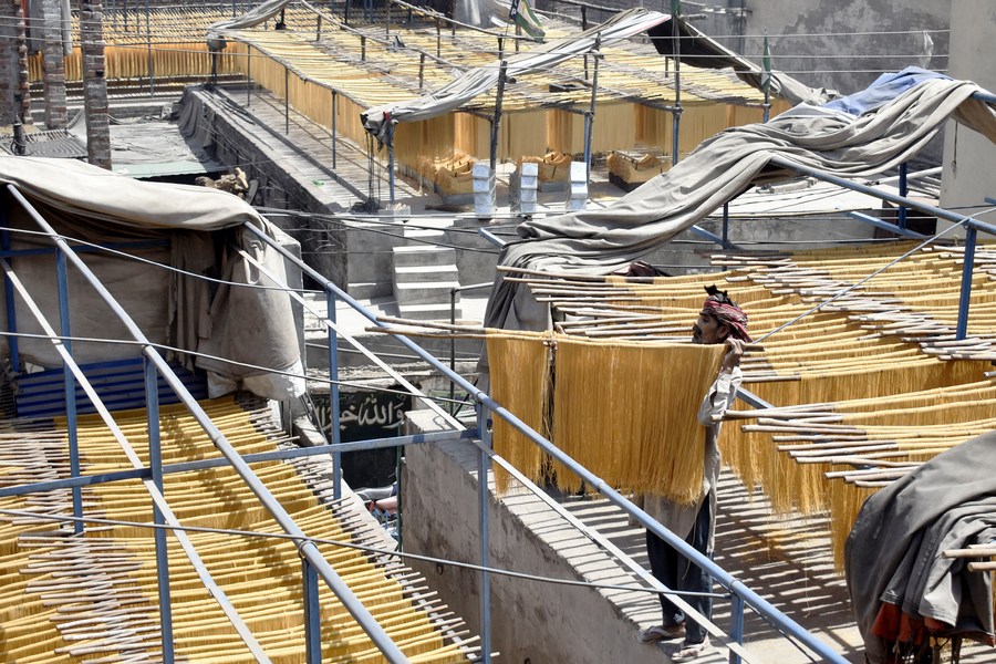 LAHORE, Pakistan, April 7 (Xinhua) -- Workers were busy making traditional vermicelli noodles used for breaking fast during the holy month of Ramadan at a factory in Lahore, Pakistan.