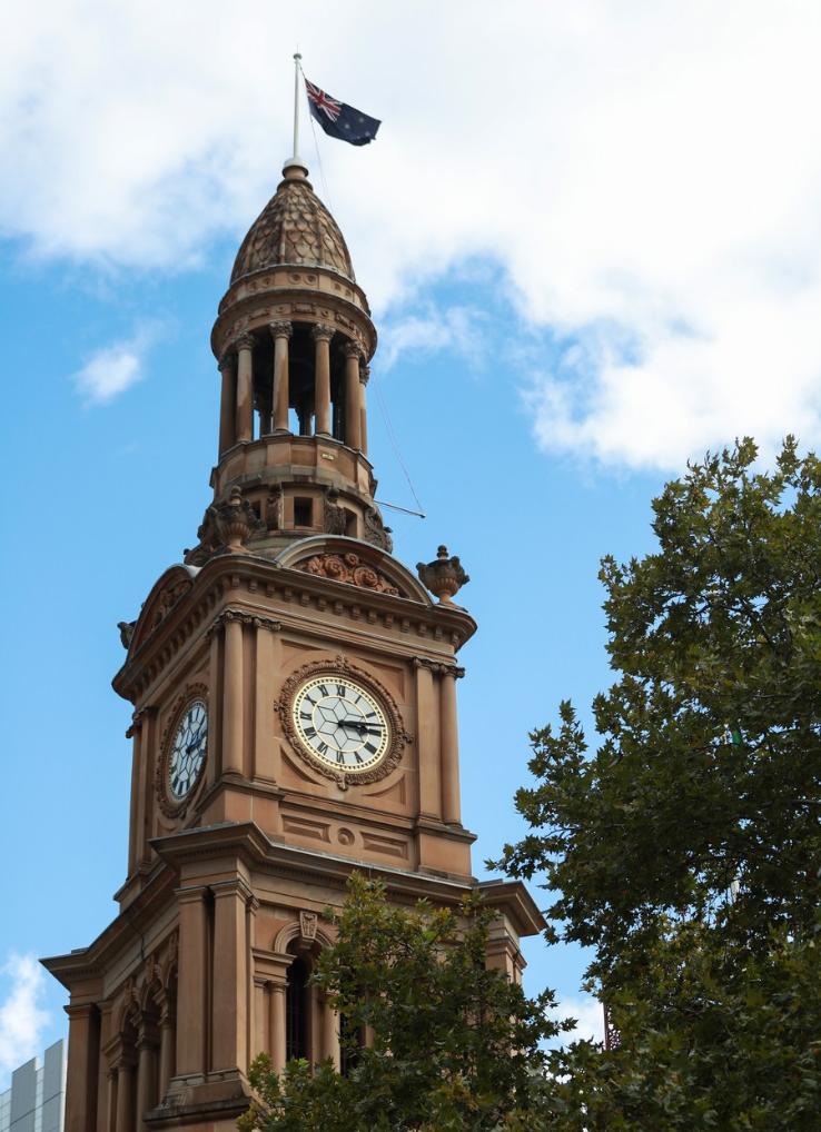 Photo take on April 7, 2024 shows the clock tower of the Town Hall in Sydney, Australia. (Xinhua/Ma Ping)