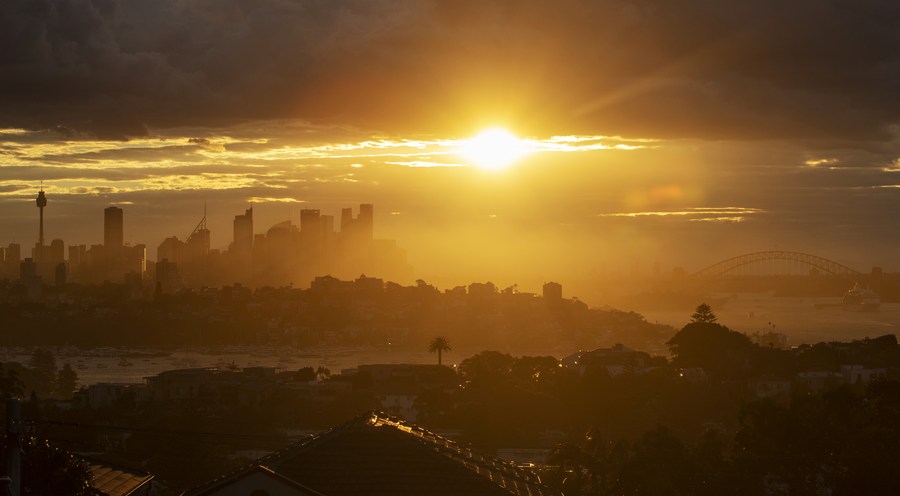 Photo take on April 7, 2024 shows a sunset view in Sydney, Australia. (Xinhua/Ma Ping)■