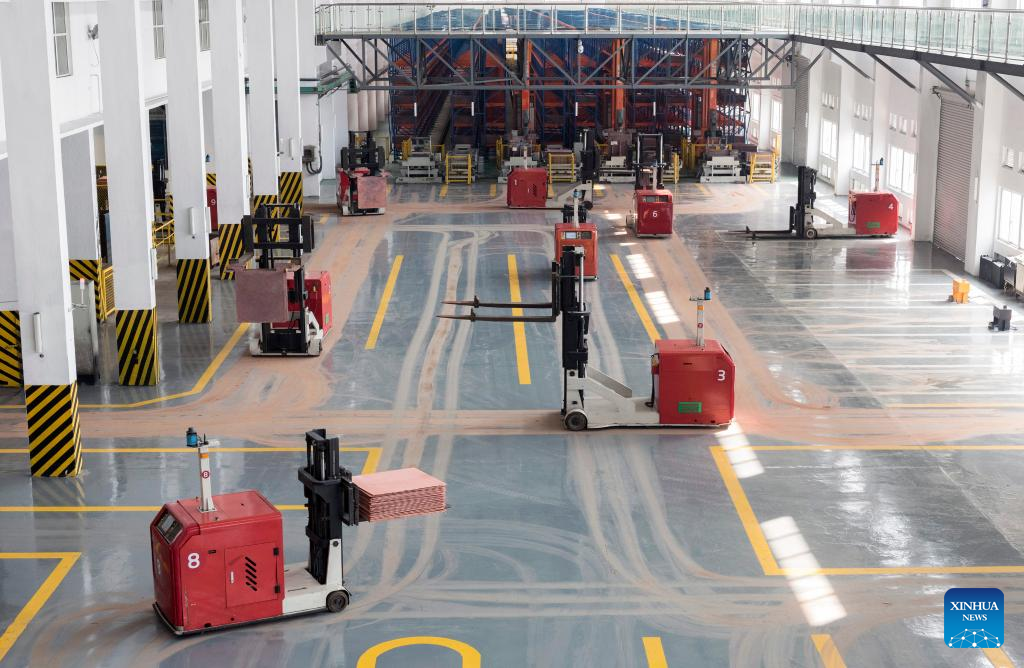 This photo taken on Feb. 17, 2023 shows an interior view of a plant of Jiangxi Copper Co., Ltd. (Jiangxi Copper) in Guixi City, east China's Jiangxi Province. (Photo by Hu Dunhuang/Xinhua)
