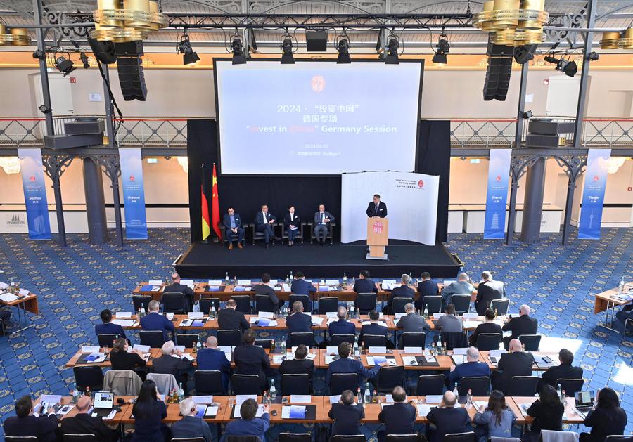 This photo shows a scene at 2024 "Invest in China" Germany Session in Stuttgart, Germany, April 5, 2024. (Xinhua/Ren Pengfei)