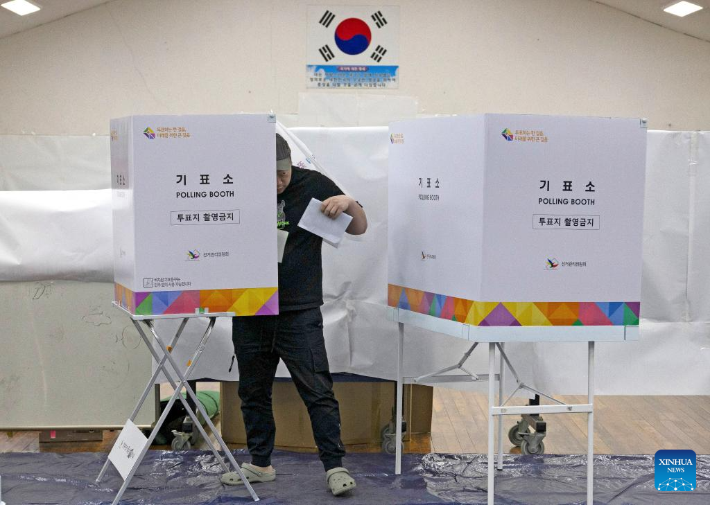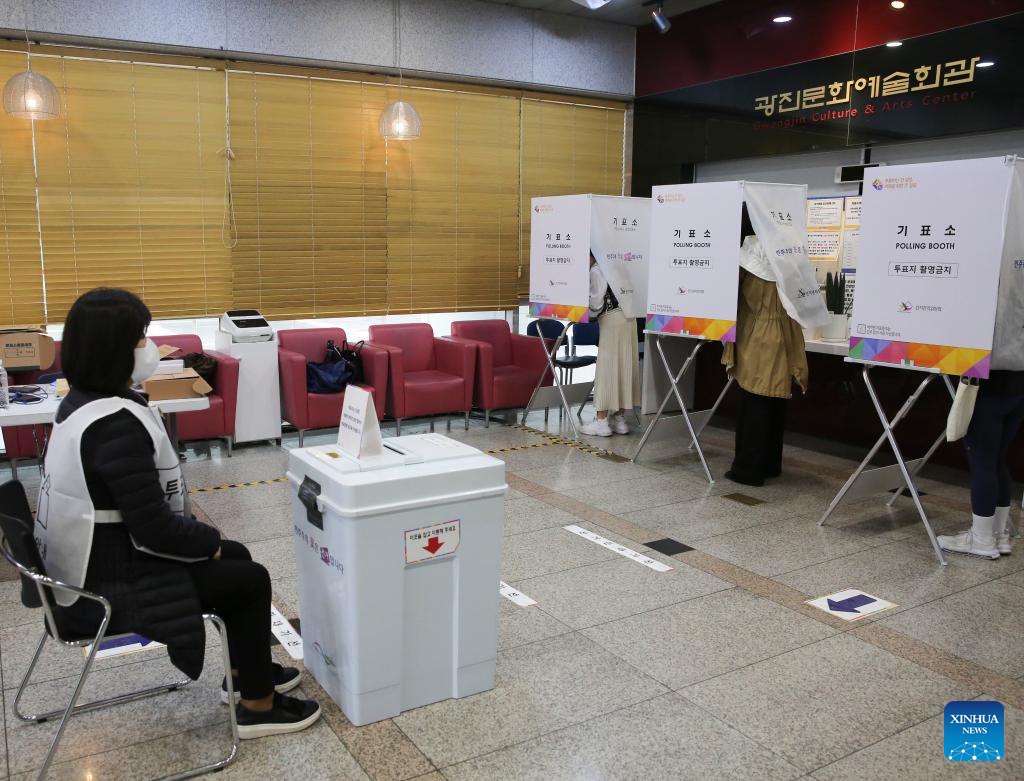 The elections, which began from 6:00 a.m. local time, were scheduled to last for 12 hours at 14,259 polling stations across the Asian country, according to the National Election Commission. (Photo by Jun Hyosang/Xinhua)