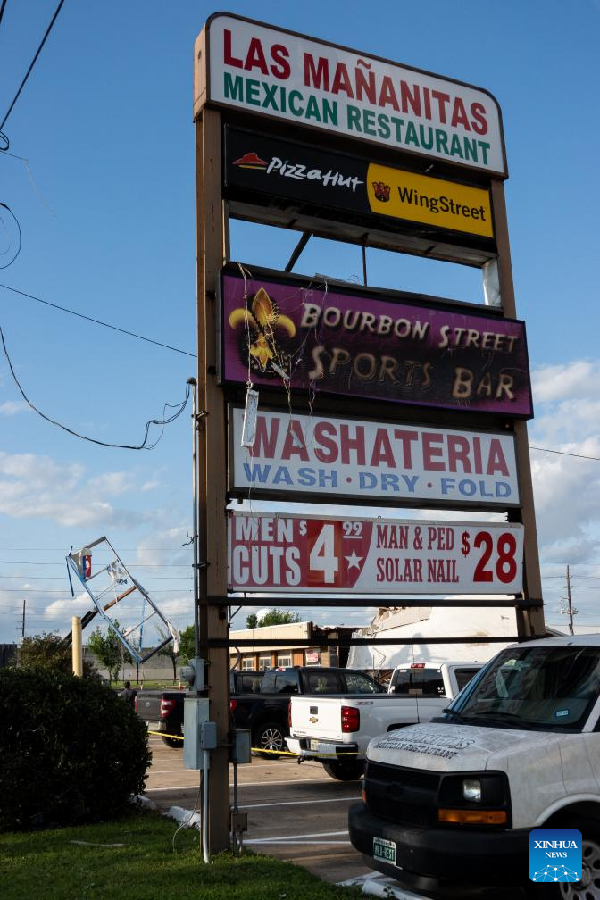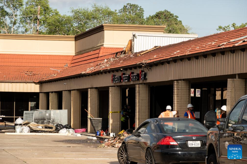 A strip mall is damaged by tornado in Katy, a suburb city near Houston, Texas, the United States, April 10, 2024. One person was killed and more than 10 others were injured after severe storms battered the U.S. South stretching from Texas to Florida on Wednesday, authorities said.