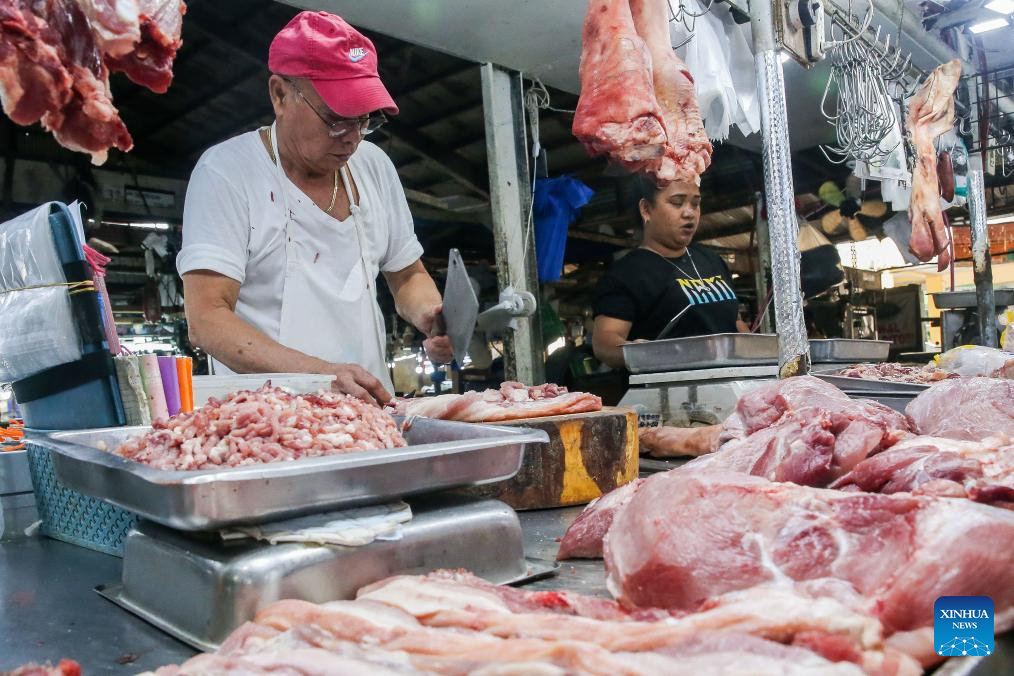 A vendor cuts meat at a market in Quezon City, the Philippines, April 11, 2024. Asia and the Pacific's economy remains strong, with growth rate in region's developing economies projected at 4.9 percent in 2024 and 2025, the Asian Development Bank (ADB) Thursday said in its latest outlook report. (Xinhua/Rouelle Umali)