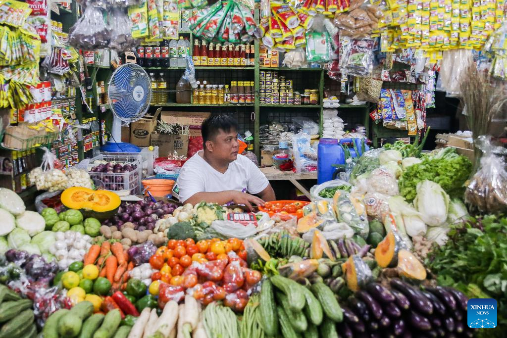 A vendor waits for customers inside his stall at a market in Quezon City, the Philippines, April 11, 2024. Asia and the Pacific's economy remains strong, with growth rate in region's developing economies projected at 4.9 percent in 2024 and 2025, the Asian Development Bank (ADB) Thursday said in its latest outlook report. (Xinhua/Rouelle Umali)