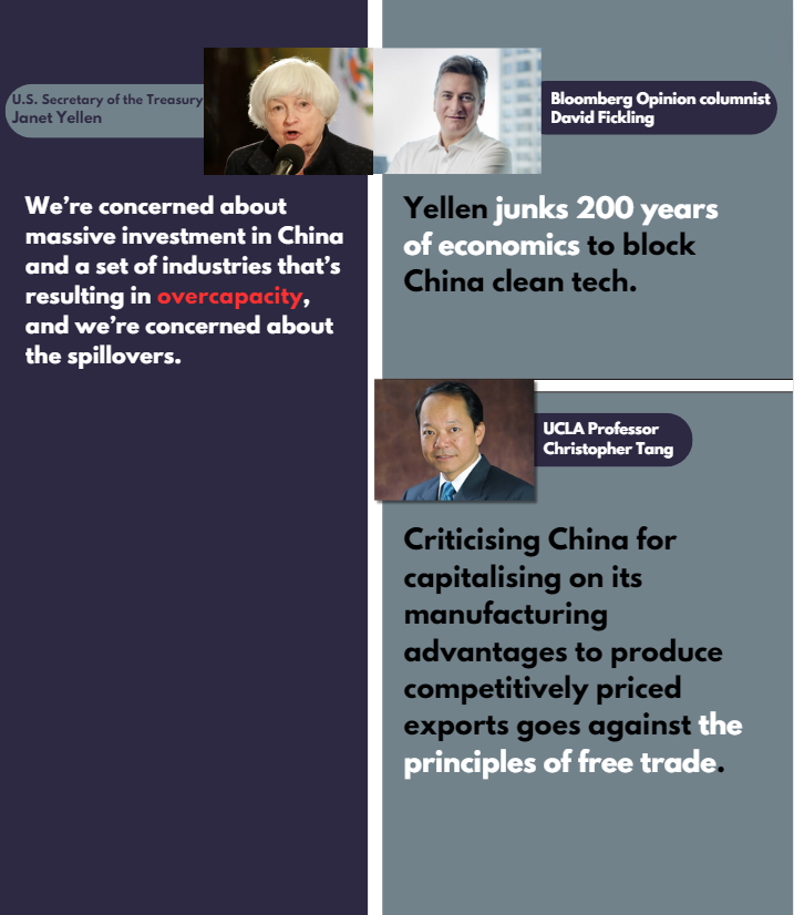 The assertion from U.S. Treasury Secretary Janet Yellen that China is guilty of overcapacity gets a strong rebuke from experts, who argue that the criticism runs counter to the basics of economics and risks violating free trade principles.