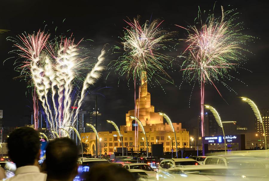 Fireworks light up the sky over Souq Waqif Doha during celebrations on the first day of the Muslim holiday of Eid al-Fitr after the end of the holy month of Ramadan in Doha, Qatar, on April 10, 2024.(Photo by Nikku/Xinhua)People are gathering at the Education City Stadium in Doha, Qatar, on April 10, 2024. (Photo by Nikku/Xinhua)Children spend the Eid al-Fitr holiday enjoying puppet shows and performances at the Al-Qabbani Theater in Damascus, Syria, April 11, 2024. (Photo by Ammar SafarjalaniXinhua)A puppet show entertains children during the Eid al-Fitr festivities at the Al-Qabbani Theater in Damascus, Syria, April 11, 2024. (Photo by Ammar SafarjalaniXinhua)Children have fun on the Eid al-Fitr holiday in Beirut, Lebanon, on April 10, 2024. (Xinhua/Bilal Jawich)People enjoy leisure time at a beach during the Eid al-Fitr holiday in Rabat, Morocco, on April 11, 2024. (Xinhua/Huo Jing)People spend their time at an amusement park during the Eid al-Fitr holiday in Hawalli Governorate, Kuwait, on April 11, 2024. (Photo by Asad/Xinhua) ■