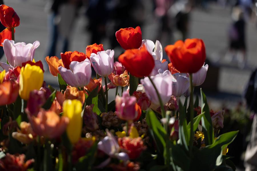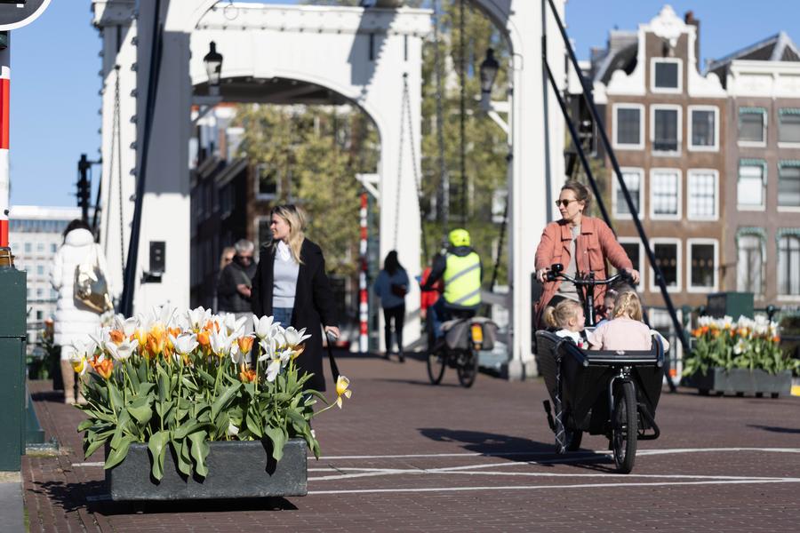 This photo taken on April 10, 2024 shows a street view at the Skinny Bridge during the 2024 Tulip Festival in Amsterdam, the Netherlands. (Photo by Sylvia Lederer/Xinhua)Tulips are seen during the 2024 Tulip Festival in Amsterdam, the Netherlands, April 10, 2024. (Photo by Sylvia Lederer/Xinhua)Flowerpots with tulips are seen on the street during the 2024 Tulip Festival in Amsterdam, the Netherlands, April 10, 2024. (Photo by Sylvia Lederer/Xinhua)People enjoy sunshine and tulips during the 2024 Tulip Festival in Amsterdam, the Netherlands, April 10, 2024. (Photo by Sylvia Lederer/Xinhua)People enjoy sunshine and tulips during the 2024 Tulip Festival in Amsterdam, the Netherlands, April 10, 2024. (Photo by Sylvia Lederer/Xinhua)■