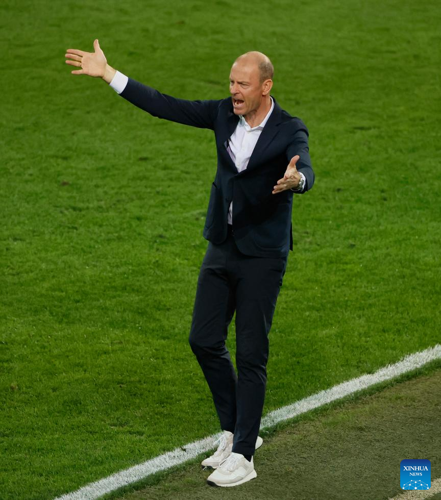 Jess Thorup, head coach of Augsburg, gestures during the German first division Bundesliga football match between FC Augsburg and Union Berlin in Augsburg, Germany, April 12, 2024. (Photo by Philippe Ruiz/Xinhua)
