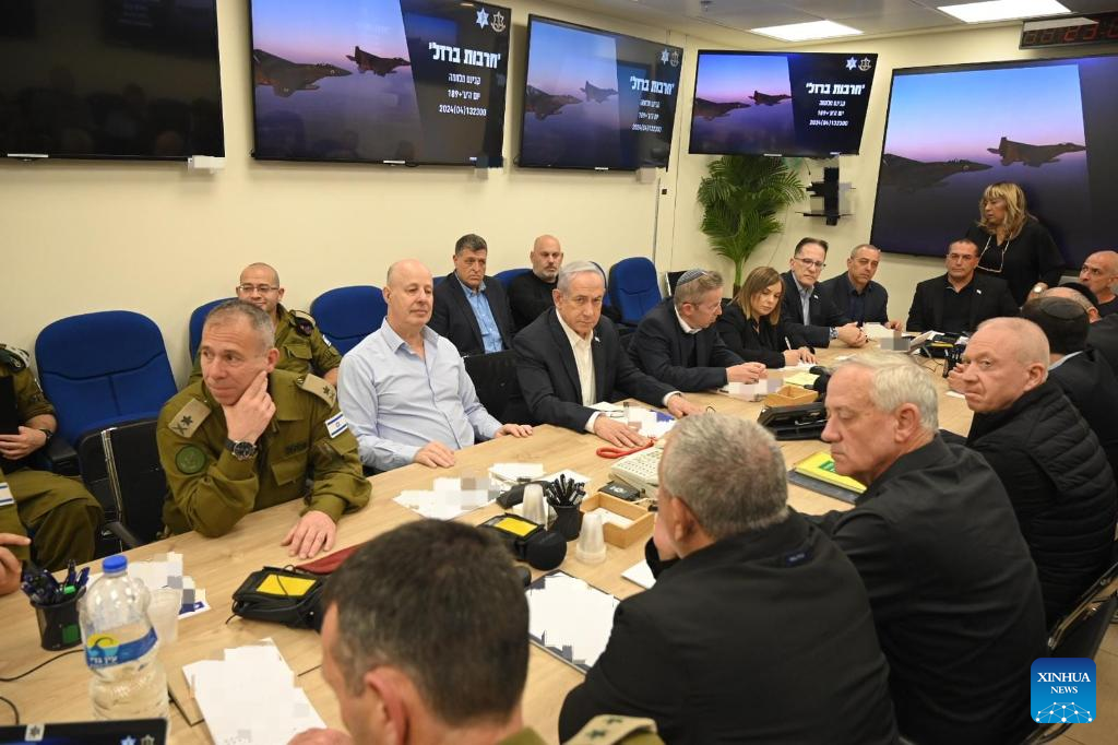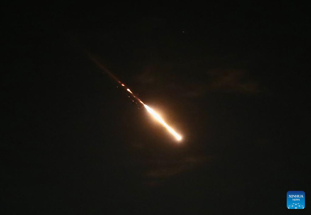 JERUSALEM, April 14 (Xinhua) -- A combined attack of dozens of ballistic missiles and hundreds of drones from Iran triggered air raid alerts across Israel early on Sunday, the Israeli army said, as residents reported multiple bombings were heard.