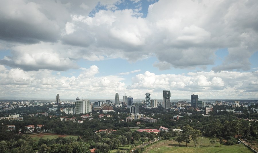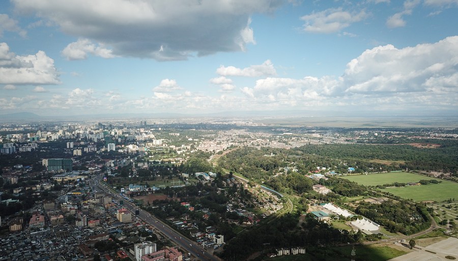 An aerial drone photo taken on April 3, 2024 shows the city view of Nairobi, the capital of Kenya and the country's economic and cultural center. (Xinhua/Han Xu)