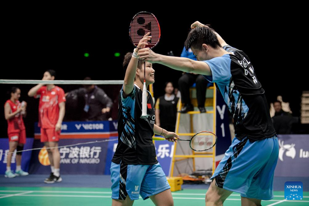 NINGBO, April 14 (Xinhua) -- With three golds, three silvers, and seven bronze medals, China's badminton team asserted its dominance in the 2024 Badminton Asia Championships here on Sunday.