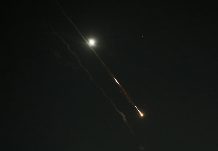 This photo taken on April 14, 2024 shows flares from explosions in the sky over Jerusalem as Israel's Iron Dome anti-missile system intercepts missiles and drones from Iran. (Xinhua/Chen Junqing)This photo taken on April 14, 2024 shows flares from explosions in the sky over Jerusalem as Israel's Iron Dome anti-missile system intercepts missiles and drones from Iran. (Photo by Jamal Awad/Xinhua)This photo taken on April 14, 2024 shows flares from explosions in the sky over Jerusalem as Israel's Iron Dome anti-missile system intercepts missiles and drones from Iran. (Xinhua/Chen Junqing)This photo taken on April 14, 2024 shows flares from explosions in the sky over Jerusalem as Israel's Iron Dome anti-missile system intercepts missiles and drones from Iran. (Photo by Jamal Awad/Xinhua)This photo taken on April 14, 2024 shows flares from explosions in the sky over Jerusalem as Israel's Iron Dome anti-missile system intercepts missiles and drones from Iran. (Xinhua/Chen Junqing)■