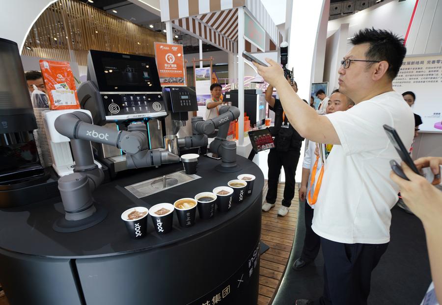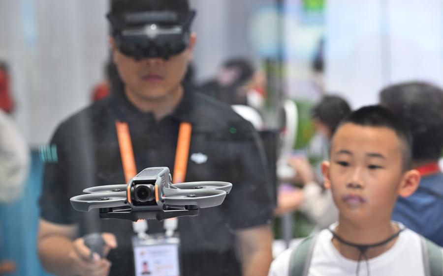People interact with an artificial intelligence (AI) robot at the fourth China International Consumer Products Expo (CICPE) in Haikou, capital city of south China's Hainan Province, April 15, 2024. (Xinhua/Guo Cheng)A staff member operates a drone at the booth of Chinese drone maker DJI at the fourth China International Consumer Products Expo (CICPE) in Haikou, capital city of south China's Hainan Province, April 15, 2024. (Xinhua/Guo Cheng)Visitors view porcelains from Jingdezhen, a world-famous "porcelain capital" in east China's Jiangxi Province, at the fourth China International Consumer Products Expo (CICPE) in Haikou, capital city of south China's Hainan Province, April 15, 2024. (Xinhua/Yang Guanyu)People visit the booth of Kweichow Moutai, China's leading liquor brand, at the fourth China International Consumer Products Expo (CICPE) in Haikou, capital city of south China's Hainan Province, April 15, 2024. (Xinhua/Yang Guanyu)Visitors view watches of Tissot at the fourth China International Consumer Products Expo (CICPE) in Haikou, capital city of south China's Hainan Province, April 15, 2024. (Xinhua/Yang Guanyu)A gold coronet is displayed at the fourth China International Consumer Products Expo (CICPE) in Haikou, capital city of south China's Hainan Province, April 15, 2024. (Xinhua/Yang Guanyu)A porcelain artwork is displayed at the fourth China International Consumer Products Expo (CICPE) in Haikou, capital city of south China's Hainan Province, April 15, 2024. (Xinhua/Yang Guanyu)Lipsticks are displayed at the fourth China International Consumer Products Expo (CICPE) in Haikou, capital city of south China's Hainan Province, April 15, 2024.(Xinhua/Yang Guanyu)An automatic coffee machine makes coffee for visitors at the fourth China International Consumer Products Expo (CICPE) in Haikou, capital city of south China's Hainan Province, April 15, 2024. (Xinhua/Li Mengjiao)Visitors view diamond jewelry at the fourth China International Consumer Products Expo (CICPE) in Haikou, capital city of south China's Hainan Province, April 15, 2024. (Xinhua/Yang Guanyu)A Lamborghini car is displayed at the fourth China International Consumer Products Expo (CICPE) in Haikou, capital city of south China's Hainan Province, April 15, 2024. (Xinhua/Yang Guanyu)■
