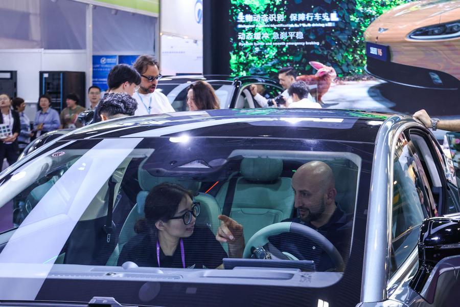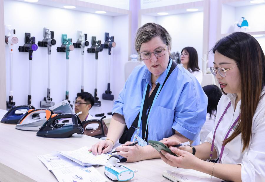 A visitor learns about an energy storage system during the 135th session of the China Import and Export Fair in Guangzhou, south China's Guangdong Province, April 15, 2024. (Xinhua/Lu Hanxin)Visitors select speakers during the 135th session of the China Import and Export Fair in Guangzhou, south China's Guangdong Province, April 15, 2024. (Xinhua/Lu Hanxin)A purchaser (L) talks with an exhibitor during the 135th session of the China Import and Export Fair in Guangzhou, south China's Guangdong Province, April 15, 2024. (Xinhua/Deng Hua)A purchaser learns about a new energy vehicle during the 135th session of the China Import and Export Fair in Guangzhou, south China's Guangdong Province, April 15, 2024. (Xinhua/Liu Dawei)A purchaser talks with an exhibitor at a household appliances booth during the 135th session of the China Import and Export Fair in Guangzhou, south China's Guangdong Province, April 15, 2024. (Xinhua/Liu Dawei)This photo taken on April 15, 2024 shows a scene of the 135th session of the China Import and Export Fair in Guangzhou, south China's Guangdong Province. (Xinhua/Lu Hanxin)■