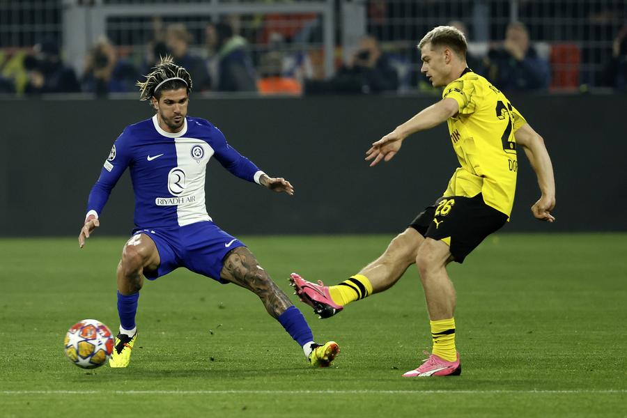 BERLIN, April 16 (Xinhua) -- Borussia Dortmund turned around a 2-1 first-leg defeat by clinching a hard-earned 4-2 victory over resilient Atletico Madrid in the second leg on home soil on Tuesday.