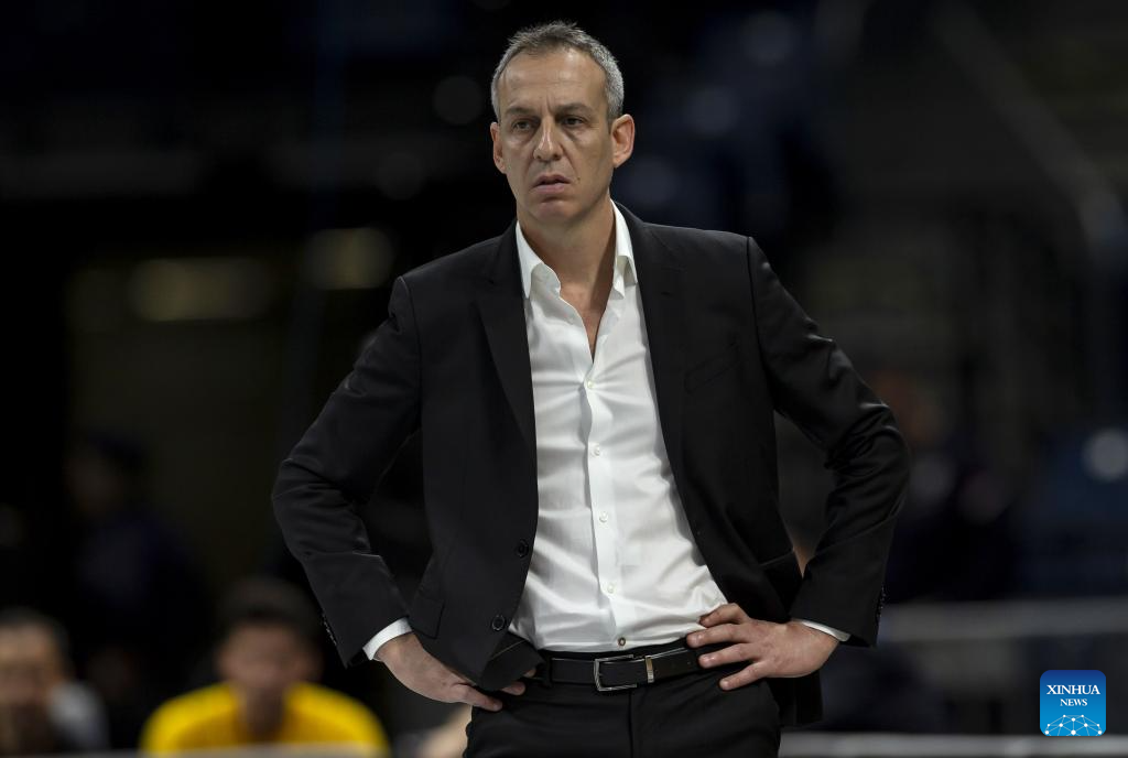 Maccabi's head coach Oded Kattash gestures during round one play-in Euroleague basketball match between Maccabi and Basconia in Belgrade, Serbia, on April 16, 2024. (Photo by Predrag Milosavljevic/Xinhua)