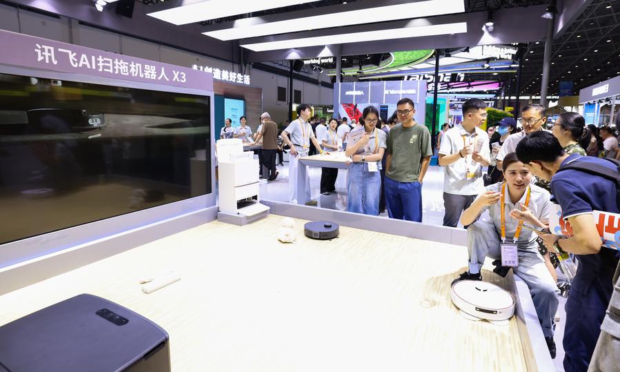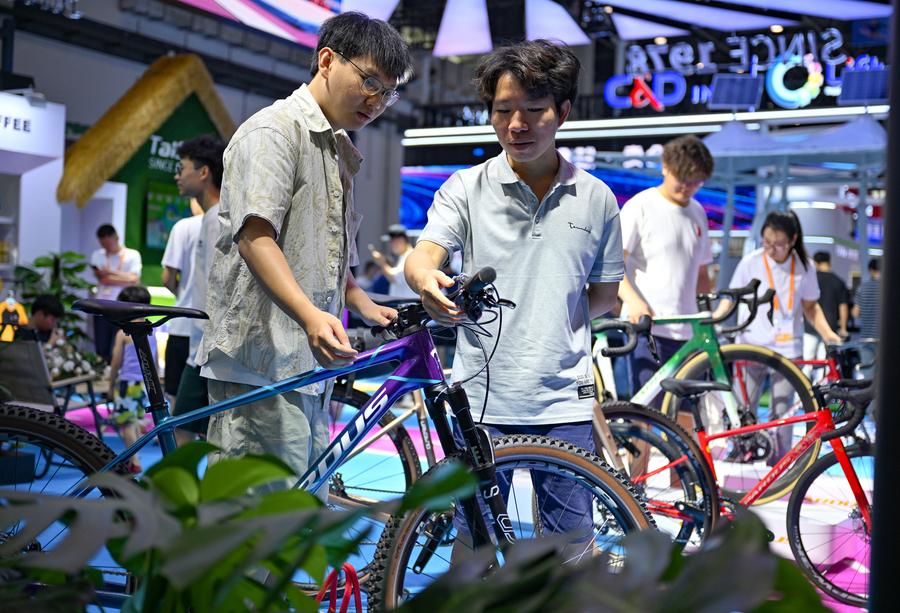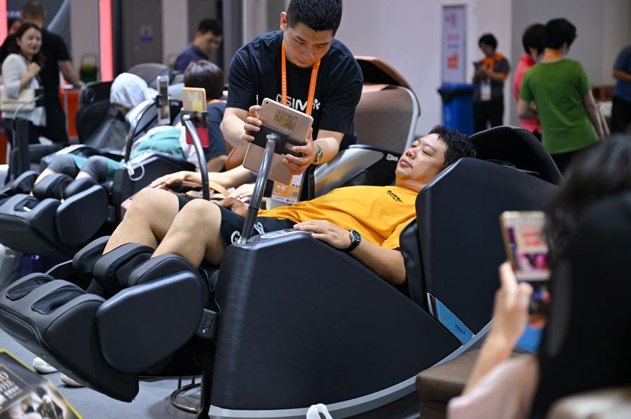 Visitors try the bicycles at the booth of Taishan Sports Industry Group Co., Ltd. during the fourth China International Consumer Products Expo in Haikou, capital city of south China's Hainan Province, April 17, 2024. (Xinhua/Guo Cheng)Visitors try OSIM massage chairs during the fourth China International Consumer Products Expo in Haikou, capital city of south China's Hainan Province, April 17, 2024. (Xinhua/Guo Cheng)This combo photo shows visitors looking at Lamborghini vehicles displayed during the fourth China International Consumer Products Expo in Haikou, capital city of south China's Hainan Province, April 17, 2024. (Xinhua/Li Mengjiao)A visitor looks at an Audi vehicle during the fourth China International Consumer Products Expo in Haikou, capital city of south China's Hainan Province, April 17, 2024. (Xinhua/Yang Guanyu)The booth of Bloomage Biotechnology Corp., Ltd. is seen during the fourth China International Consumer Products Expo in Haikou, capital city of south China's Hainan Province, April 17, 2024. (Xinhua/Yang Guanyu)Visitors look at iFlytek's AI-powered sweeping and mopping robot during the fourth China International Consumer Products Expo in Haikou, capital city of south China's Hainan Province, April 17, 2024. (Xinhua/Yang Guanyu)Visitors look at an iFlytek translator during the fourth China International Consumer Products Expo in Haikou, capital city of south China's Hainan Province, April 17, 2024. (Xinhua/Yang Guanyu)Visitors try the earphones of Shokz during the fourth China International Consumer Products Expo in Haikou, capital city of south China's Hainan Province, April 17, 2024. (Xinhua/Guo Cheng)People visit the booth of Gaonas during the fourth China International Consumer Products Expo in Haikou, capital city of south China's Hainan Province, April 17, 2024. (Xinhua/Guo Cheng)People visit the booth of Puig during the fourth China International Consumer Products Expo in Haikou, capital city of south China's Hainan Province, April 17, 2024. (Xinhua/Yang Guanyu)Visitors attend the fourth China International Consumer Products Expo in Haikou, capital city of south China's Hainan Province, April 17, 2024. (Xinhua/Yang Guanyu)Visitors attend the fourth China International Consumer Products Expo in Haikou, capital city of south China's Hainan Province, April 17, 2024. (Xinhua/Yang Guanyu)■