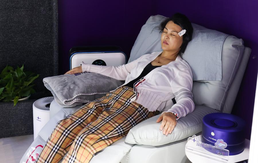 "The white noise, played via a sleep-aid mobile app, can help me calm down and send me to sleep much sooner," Feng said. Shouldering great work burden in the daytime, the white-collar worker finds good sleep a rare visitor to herself.