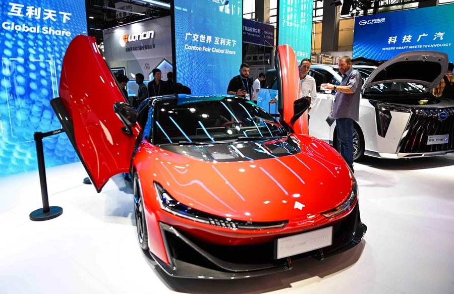A visitor tries a new energy vehicle during the 135th session of the China Import and Export Fair, also known as the Canton Fair, in Guangzhou, south China's Guangdong Province, April 15, 2024. (Xinhua/Lu Hanxin)A new energy vehicle is displayed during the 135th session of the China Import and Export Fair, also known as the Canton Fair, in Guangzhou, south China's Guangdong Province, April 15, 2024. (Xinhua/Deng Hua)Visitors view a new energy vehicle during the 135th session of the China Import and Export Fair, also known as the Canton Fair, in Guangzhou, south China's Guangdong Province, April 15, 2024. (Xinhua/Liu Dawei)Visitors view a new energy vehicle during the 135th session of the China Import and Export Fair, also known as the Canton Fair, in Guangzhou, south China's Guangdong Province, April 15, 2024. (Xinhua/Deng Hua)Visitors view a new energy vehicle during the 135th session of the China Import and Export Fair, also known as the Canton Fair, in Guangzhou, south China's Guangdong Province, April 15, 2024. (Xinhua/Lu Hanxin)Visitors view a new energy vehicle during the 135th session of the China Import and Export Fair, also known as the Canton Fair, in Guangzhou, south China's Guangdong Province, April 15, 2024. (Xinhua/Liu Dawei)A visitor tries a new energy vehicle during the 135th session of the China Import and Export Fair, also known as the Canton Fair, in Guangzhou, south China's Guangdong Province, April 15, 2024. (Xinhua/Liu Dawei)Visitors view a new energy supercar during the 135th session of the China Import and Export Fair, also known as the Canton Fair, in Guangzhou, south China's Guangdong Province, April 15, 2024. (Xinhua/Deng Hua)A visitor tries a new energy vehicle during the 135th session of the China Import and Export Fair, also known as the Canton Fair, in Guangzhou, south China's Guangdong Province, April 15, 2024. (Xinhua/Liu Dawei)Visitors try a new energy vehicle during the 135th session of the China Import and Export Fair, also known as the Canton Fair, in Guangzhou, south China's Guangdong Province, April 15, 2024. (Xinhua/Liu Dawei)Visitors view chargers for new energy vehicles during the 135th session of the China Import and Export Fair, also known as the Canton Fair, in Guangzhou, south China's Guangdong Province, April 15, 2024. (Xinhua/Liu Dawei)An electric tractor is displayed during the 135th session of the China Import and Export Fair, also known as the Canton Fair, in Guangzhou, south China's Guangdong Province, April 15, 2024. (Xinhua/Deng Hua)Visitors learn about a new energy vehicle during the 135th session of the China Import and Export Fair, also known as the Canton Fair, in Guangzhou, south China's Guangdong Province, April 15, 2024. (Xinhua/Deng Hua)A visitor learns about a new energy vehicle of BYD during the 135th session of the China Import and Export Fair, also known as the Canton Fair, in Guangzhou, south China's Guangdong Province, April 15, 2024. (Xinhua/Liu Dawei)Visitors view a new energy supercar during the 135th session of the China Import and Export Fair, also known as the Canton Fair, in Guangzhou, south China's Guangdong Province, April 15, 2024. (Xinhua/Liu Dawei)■