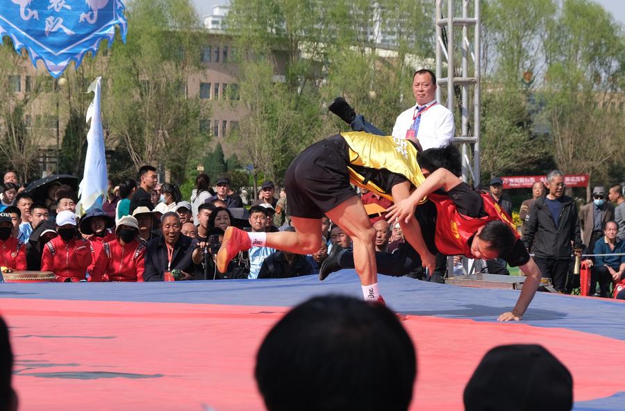 TAIYUAN, April 18 (Xinhua) -- After Li Yansheng winning his sixth straight bout, the open-air arena erupted with thunderous applause and cheers, while the host's announcement heightened the atmosphere, "congratulations to our first 'Sheep Holder,' Li Yansheng!"