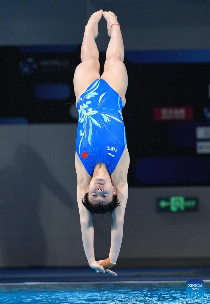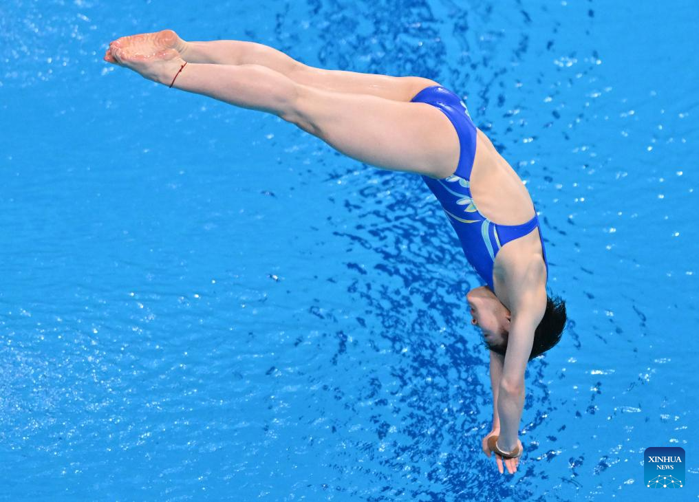 Chen Yiwen of China practises during the women's 3m springboard final at the World Acquatics Diving World Cup 2024 Super Final in Xi'an, northwest China's Shaanxi Province, April 20, 2024. (Xinhua/Zou Jingyi)