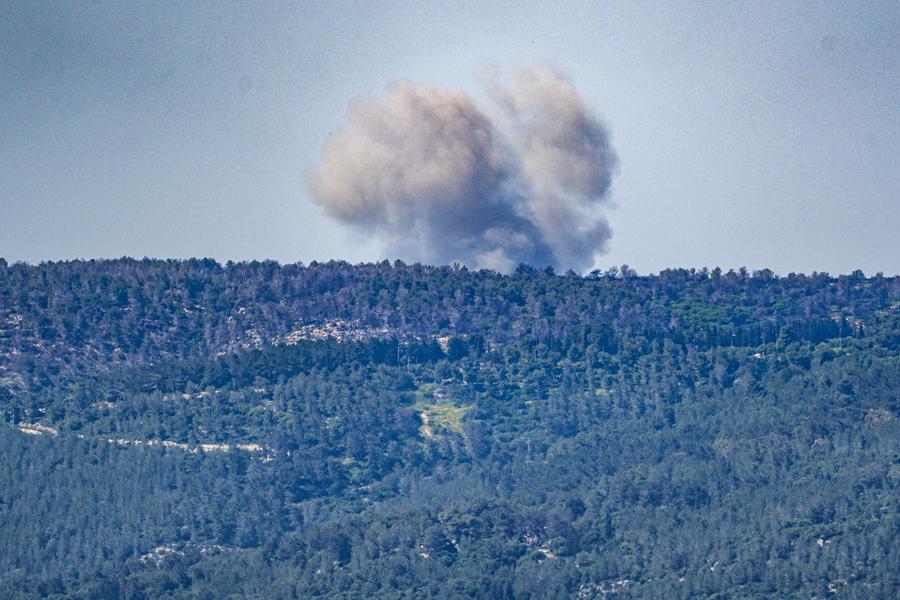 Smoke rises following an Israeli strike in southern Lebanon, as seen from northern Israel, on April 17, 2024. (Ayal Margolin/JINI via Xinhua)