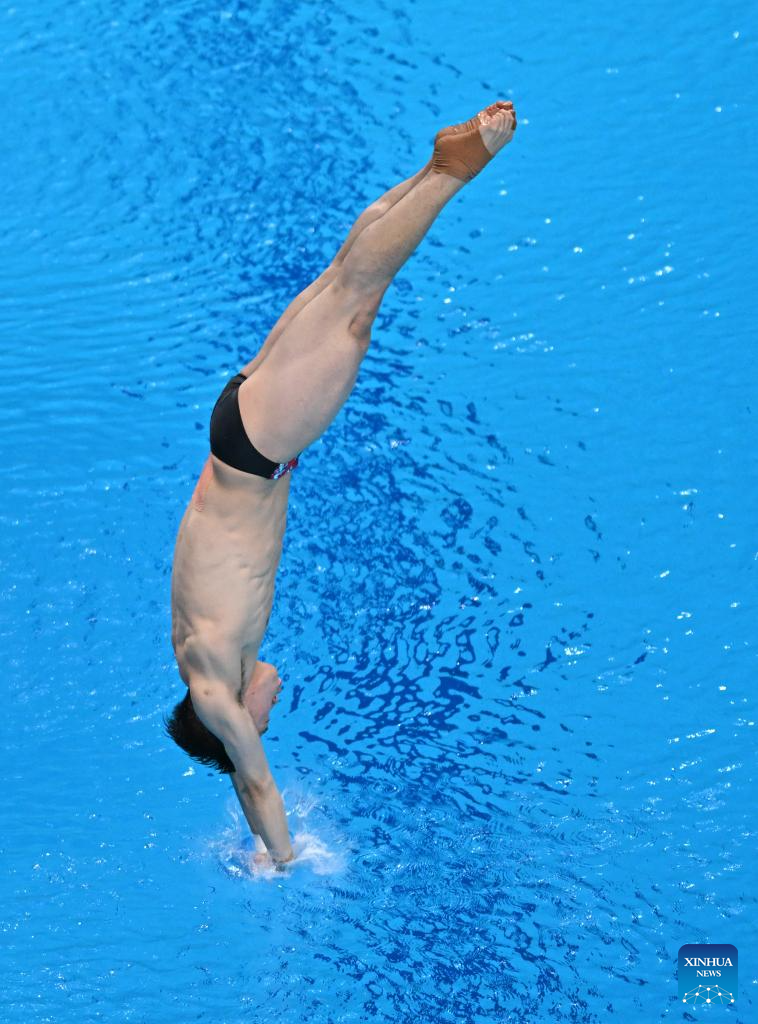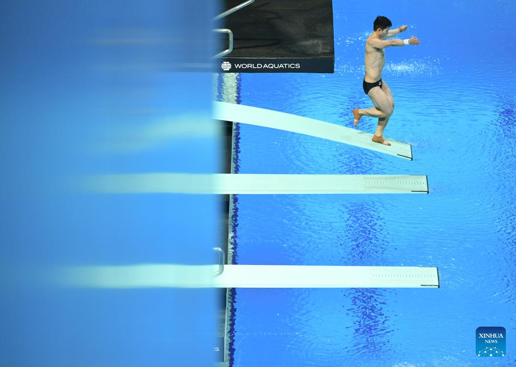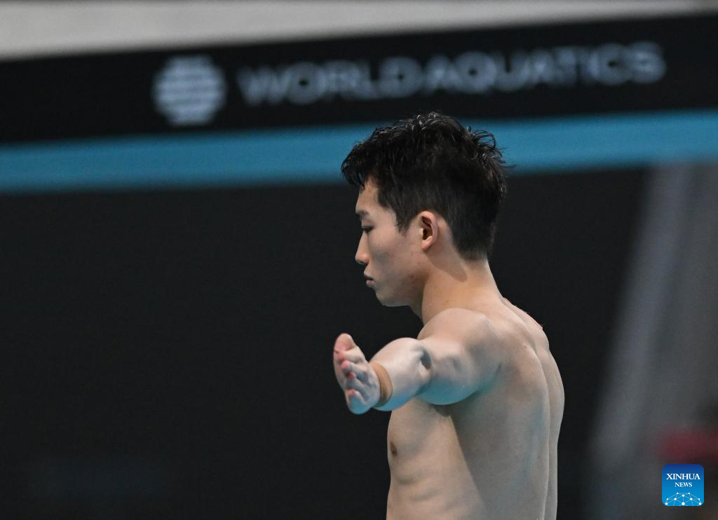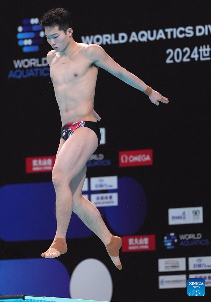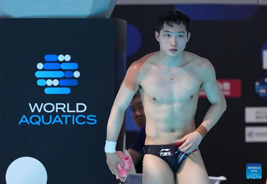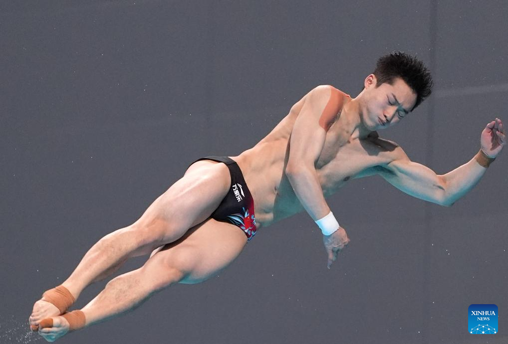Wang Zongyuan of China competes during the men's 3m springboard final at the World Acquatics Diving World Cup 2024 Super Final in Xi'an, northwest China's Shaanxi Province, April 20, 2024. (Xinhua/Li Yibo)