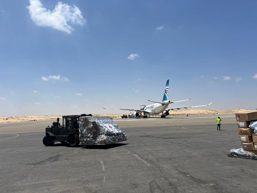 CAIRO, April 19 (Xinhua) -- A batch of humanitarian supplies provided by the Chinese government to Palestinians arrived at Egypt's Al-Arish airport on Friday. The aid will be transported to the Gaza Strip through the Rafah border crossing.