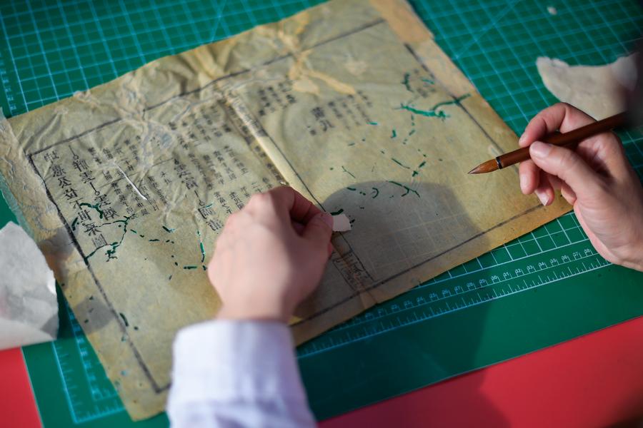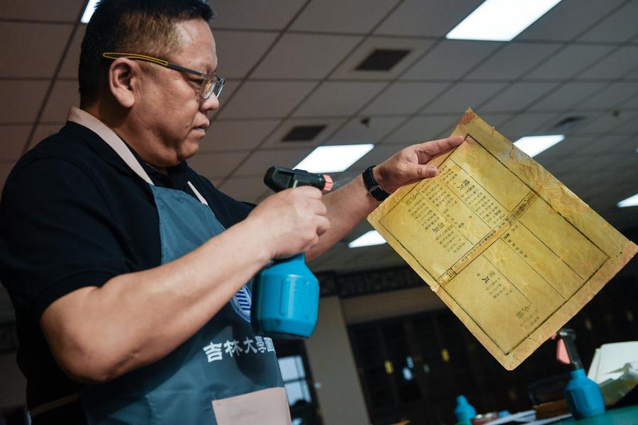 Zhang Qi, a restorer of ancient books in the library of Jilin University, mends the pages of an ancient book at the library of Jilin University in Changchun, northeast China's Jilin Province, April 19, 2024. (Xinhua/Xu Chang)Zhang Qi, a restorer of ancient books in the library of Jilin University, observes the damage to the pages of an ancient book ahead of restoration at the library of Jilin University in Changchun, northeast China's Jilin Province, April 19, 2024. (Xinhua/Xu Chang)Zhang Hua, a restorer of ancient books in the library of Jilin University, observes the damage to the pages of an ancient book ahead of restoration at the library of Jilin University in Changchun, northeast China's Jilin Province, April 19, 2024. (Xinhua/Xu Chang)This combo file photo provided by the library of Jilin University shows the comparison of some ancient books before and after restoration. (Xinhua)Wang Lihua, director of the ancient books department of Jilin University Library, checks the preservation of ancient books at the library of Jilin University in Changchun, northeast China's Jilin Province, April 19, 2024. (Xinhua/Xu Chang)Zhang Hua, a restorer of ancient books in the library of Jilin University, mends the pages of an ancient book at the library of Jilin University in Changchun, northeast China's Jilin Province, April 19, 2024. (Xinhua/Xu Chang)Zhang Qi, a restorer of ancient books in the library of Jilin University, sprays water on the restored pages of an ancient book for flattening at the library of Jilin University in Changchun, northeast China's Jilin Province, April 19, 2024. (Xinhua/Xu Chang)Zhang Qi, a restorer of ancient books in the library of Jilin University, observes the restoration of an ancient book at the library of Jilin University in Changchun, northeast China's Jilin Province, April 19, 2024. (Xinhua/Xu Chang)■