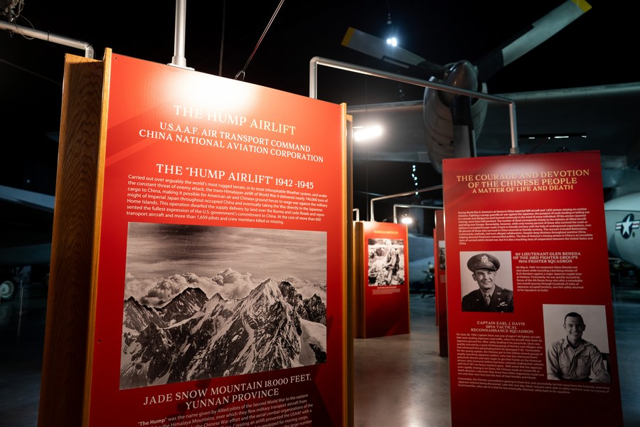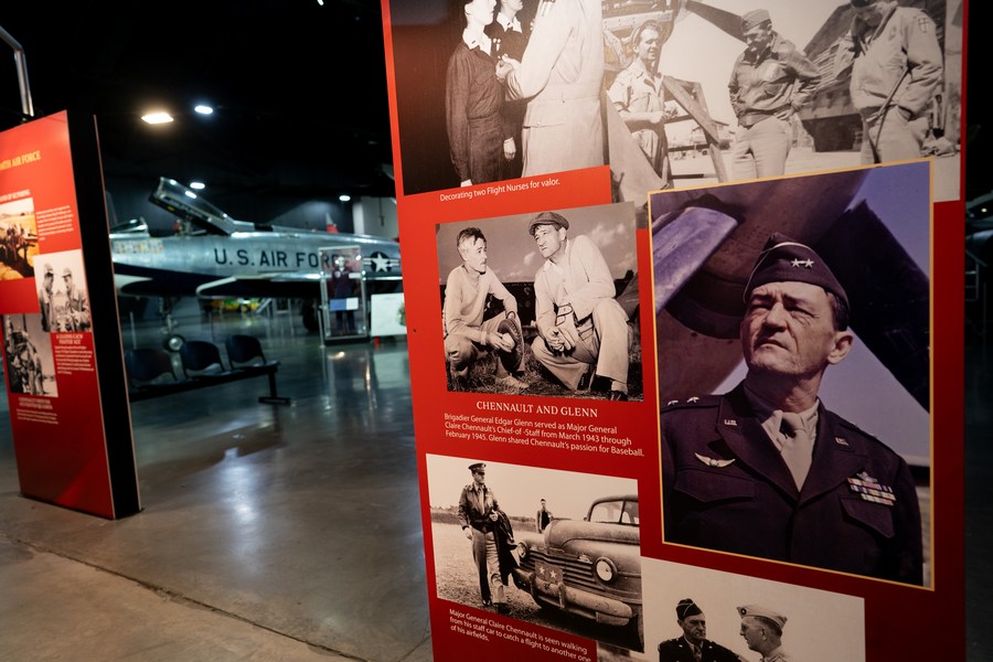 A photo exhibition commemorating the Flying Tigers and Doolittle Raiders, Americans who fought Japan in World War II in cooperation with the Chinese people, is held at the National Museum of the U.S. Air Force in Dayton, Ohio, the United States, April 18, 2024. (Xinhua/Liu Jie)