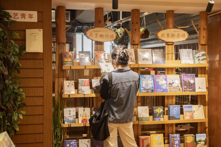 A woman browses a book at a bookstore in Hefei, east China's Anhui Province, April 21, 2024. (Xinhua/Fu Tian)A woman and her child read books at a bookstore in Hefei, east China's Anhui Province, April 21, 2024. (Xinhua/Fu Tian)People read books at a bookstore in Hefei, east China's Anhui Province, April 21, 2024. (Xinhua/Fu Tian)■