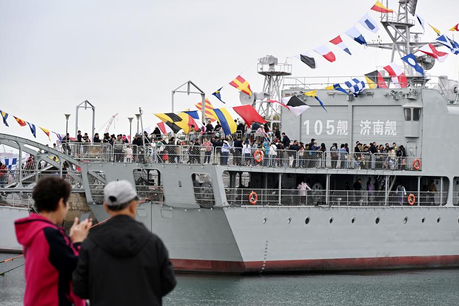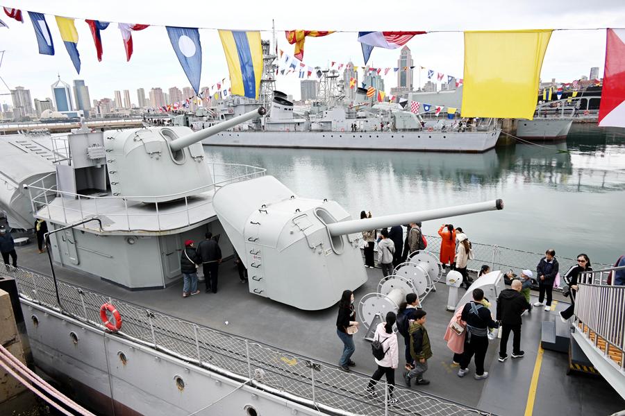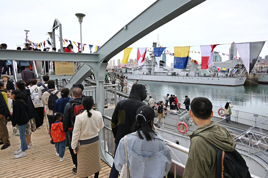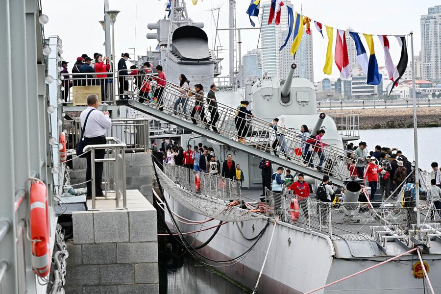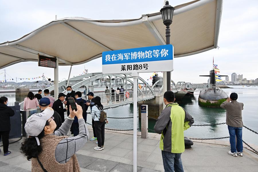 People visit the Chinese People's Liberation Army (PLA) Navy Museum in Qingdao, east China's Shandong Province, April 20, 2024. (Xinhua/Li Ziheng)