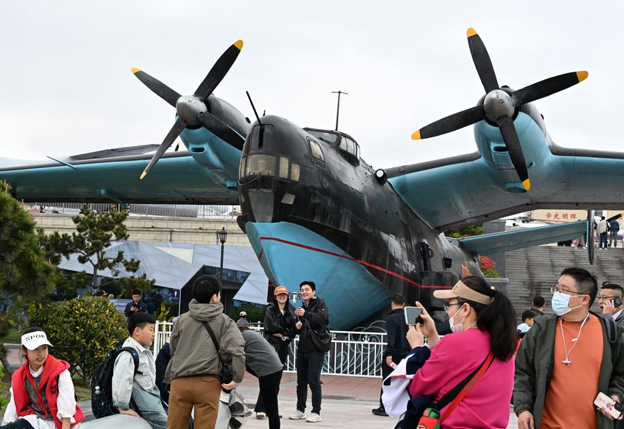 Chinese PLA Navy museum welcomes soaring tourists to celebrate the Navy's 75th anniversary-Xinhua