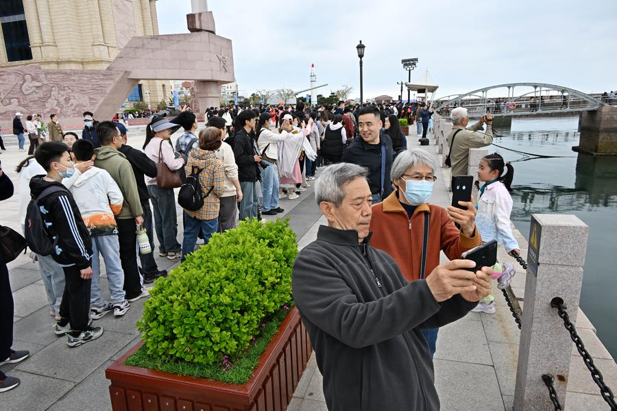 QINGDAO, April 23 (Xinhua) -- This year marks the 75th founding anniversary of the People's Liberation Army (PLA) Navy. The Chinese PLA Navy Museum is witnessing a peak on the numbers of visitors and taking measures to meet the needs of visitors through methods of ticket booking system and extended opening hours.