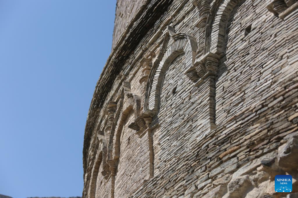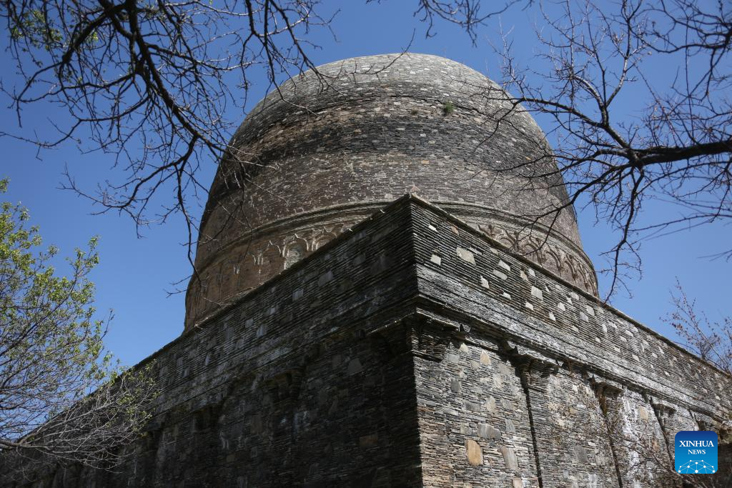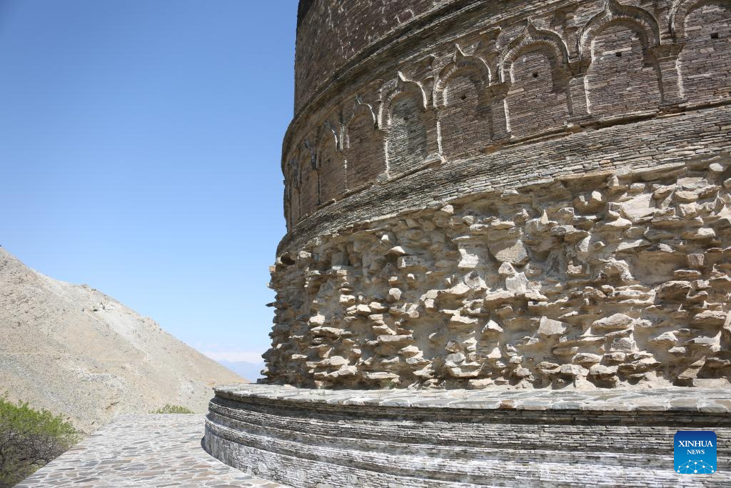 This photo taken on April 24, 2024 shows a view of the Topdara Stupa in Charikar, capital of Parwan Province, east Afghanistan. The Topdara Stupa, one of the most important and complete Buddhist relics in Afghanistan, is under strict protection by authorities. It won the Award of Merit of the UNESCO Asia-Pacific Awards for Cultural Heritage Conservation in 2022. (Photo by Saifurahman Safi/Xinhua)