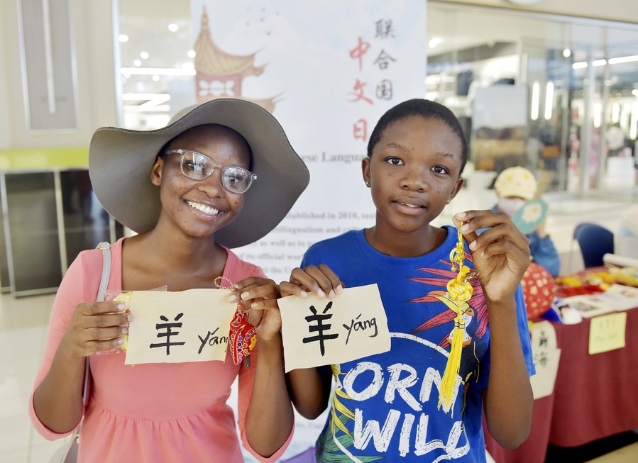 Young girls participate in the UN Chinese Language Day celebration in Gaborone, Botswana, on April 20, 2024. (Photo by Tshekiso Tebalo/Xinhua)