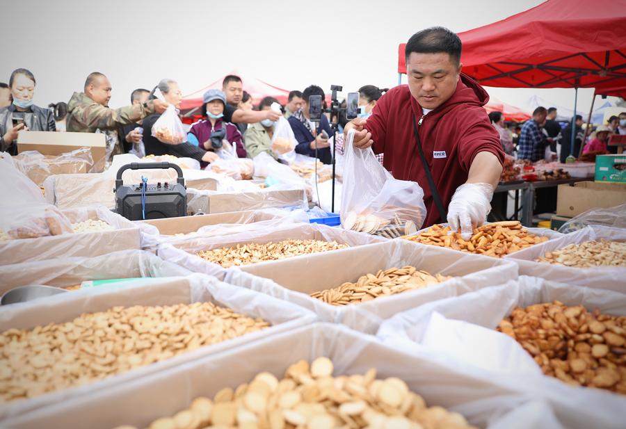 Wei Zhongshuai makes biscuits at his bakery in Xiongyue Town, Bayuquan District of Yingkou City in northeast China's Liaoning Province, April 24, 2024. (Xinhua/Yao Jianfeng)An aerial drone photo shows Wei Zhongshuai's biscuit stall at a market in Bayuquan District of Yingkou City in northeast China's Liaoning Province, April 25, 2024. (Xinhua/Yao Jianfeng)Wei Zhongshuai sells biscuits at a market in Bayuquan District of Yingkou City in northeast China's Liaoning Province, April 25, 2024. (Xinhua/Yao Jianfeng)Wei Zhongshuai sells biscuits at his bakery in Xiongyue Town, Bayuquan District of Yingkou City in northeast China's Liaoning Province, April 24, 2024. (Xinhua/Yao Jianfeng)Wei Zhongshuai (L) sells biscuits at a market in Bayuquan District of Yingkou City in northeast China's Liaoning Province, April 25, 2024. (Xinhua/Yao Jianfeng)Wei Zhongshuai puts freshly baked biscuits on a cooling rack at his bakery in Xiongyue Town, Bayuquan District of Yingkou City in northeast China's Liaoning Province, April 24, 2024. (Xinhua/Yao Jianfeng)Wei Zhongshuai sells biscuits at a market in Bayuquan District of Yingkou City in northeast China's Liaoning Province, April 25, 2024. (Xinhua/Yao Jianfeng)Wei Zhongshuai (C) talks with his fans via livestreaming at a market in Bayuquan District of Yingkou City in northeast China's Liaoning Province, April 25, 2024. (Xinhua/Yao Jianfeng)■