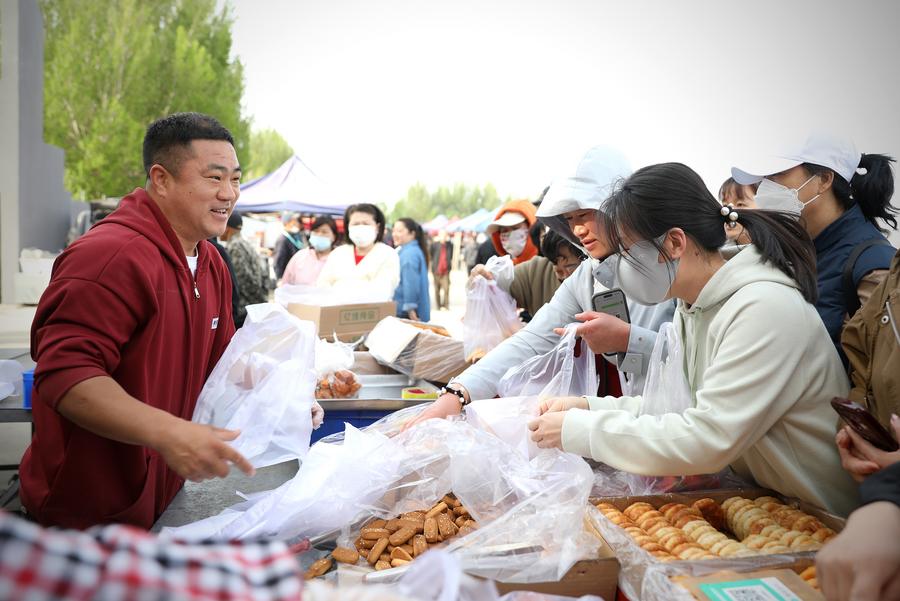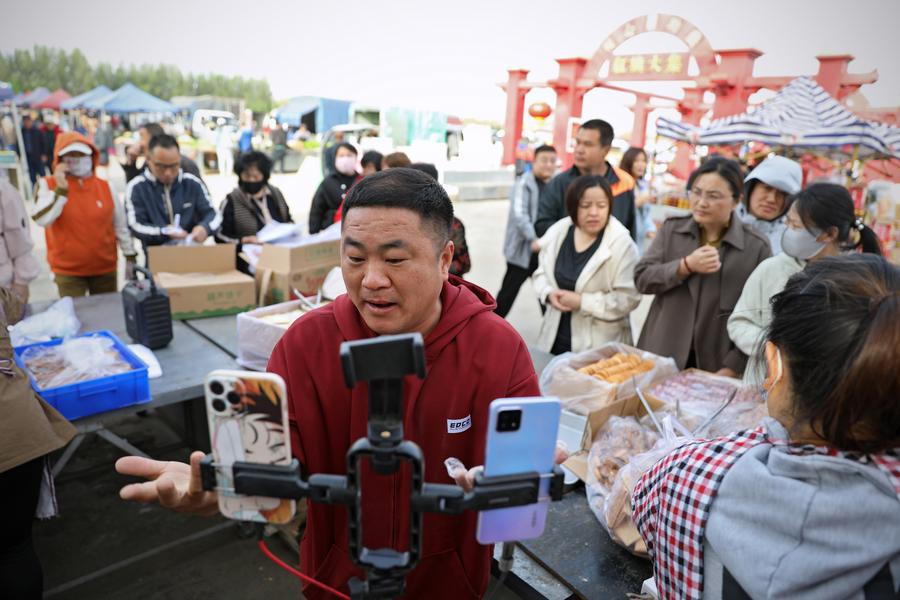 YINGKOU, April 27 (Xinhua) -- In early 2024, Wei Zhongshuai, a biscuit vendor from Xiongyue Town, caught the attention of netizens with his straightforward and funny way of speaking during a TV interview.