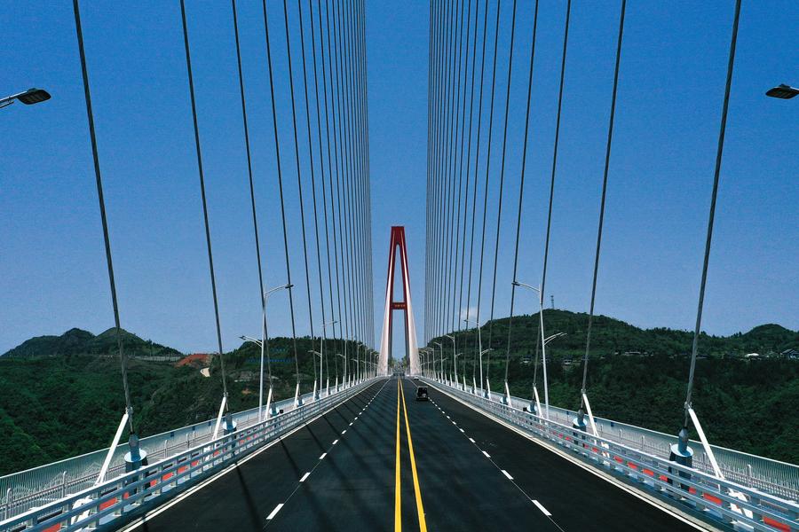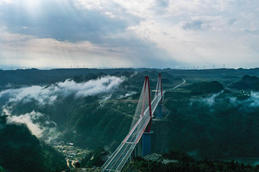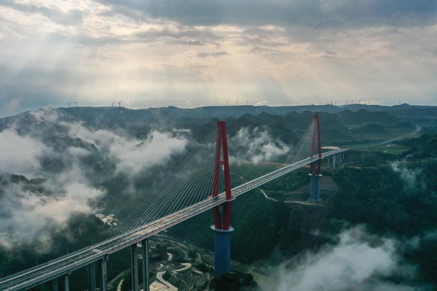 InPics | Longli River bridge in SW China's Guizhou opens to traffic