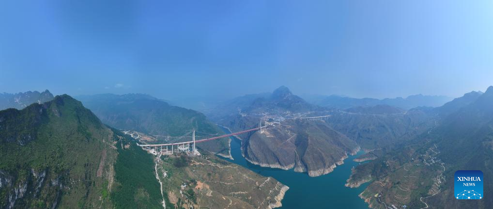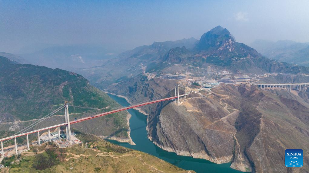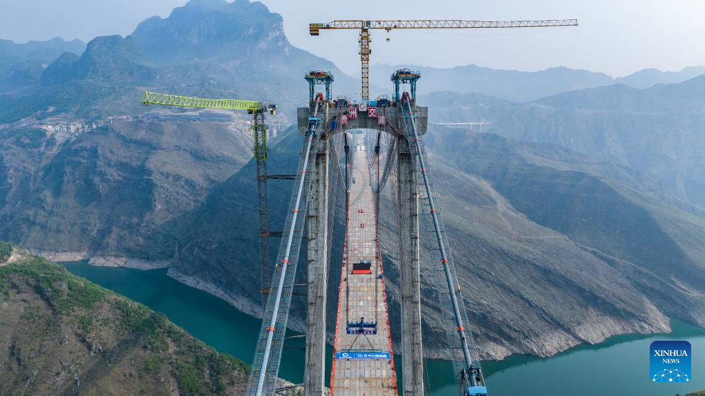 The closure of the bridge, featuring a length of 1,849 meters and a span of 1,080 meters, has been successfully completed on Sunday. (Xinhua/Tao Liang)