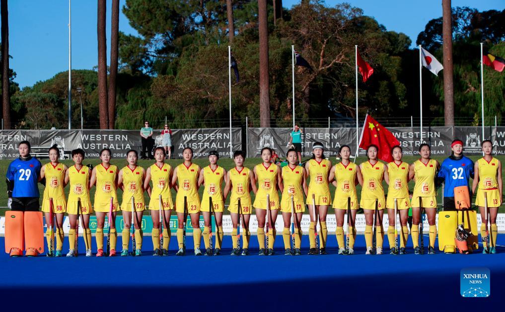 Players of China line up before a women's hockey test match between Japan and China in Perth, Australia, April 27, 2024. (Xinhua/Ma Ping)