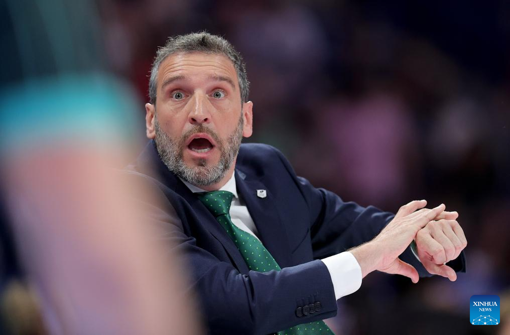Tenerife's head coach Txus Vidorreta reacts during the FIBA basketball Champions League final match between Lenovo Tenerife and Unicaja in Belgrade, Serbia, on April 28, 2024. (Photo by Predrag Milosavljevic/Xinhua)