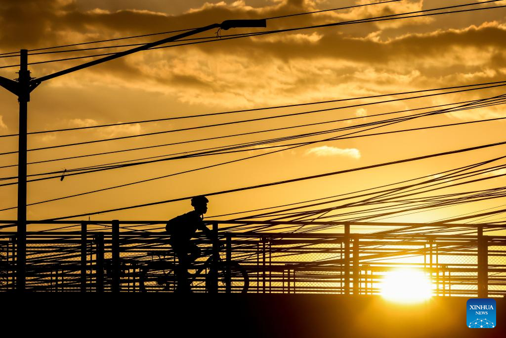 A man rides his bicycle under the scorching heat of the sun in Quezon City, the Philippines, on April 30, 2024. A government official said Tuesday that the Philippines is mulling cloud seeding to quench the country's thirst amid the drought caused by the El Nino phenomenon, which has affected 2.9 million people. (Xinhua/Rouelle Umali)